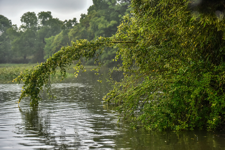 磅礴大雨下的橹船经过水中森林,真的好美。这种应该出现在云贵川等地原始森林里面的景象在杭州西溪湿地也遍地可见,真的太赞了。山野君很是喜欢这种感觉,这种橹船行驶在水上森林里的那种感觉。
