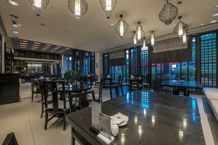 别以为这个餐厅是大厅内的一个部分,其实它的定位不低,请了专业的厨师来掌勺。在最里面靠近西溪天堂商业街的位置可以看到格调高雅的就餐环境。该餐厅的名字非常诗意,名为芦亭餐厅。古色古香、高端大气的格调与诗意化的名字让芦亭餐厅成为客人欢迎的餐厅。