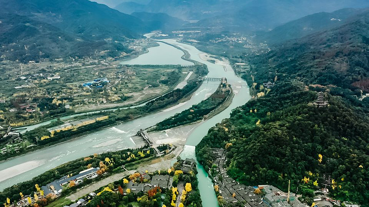 这是我航拍的 都江堰 水利工程的全景图。