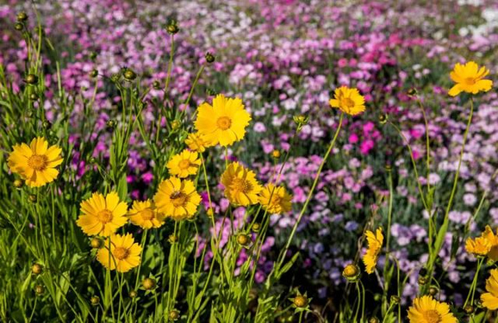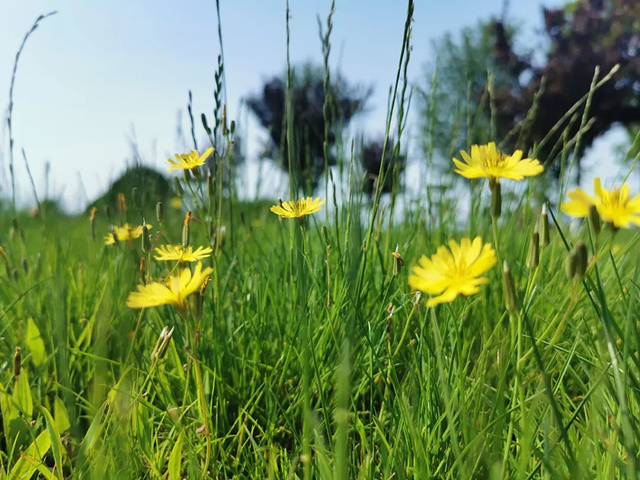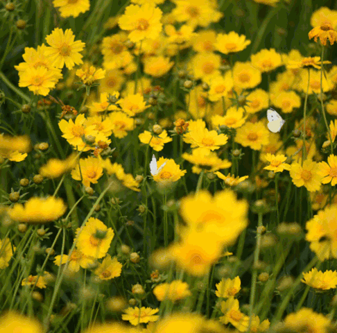 走近了看,原来是小小的金鸡菊,竞相绽放出金黄灿烂的脸庞。