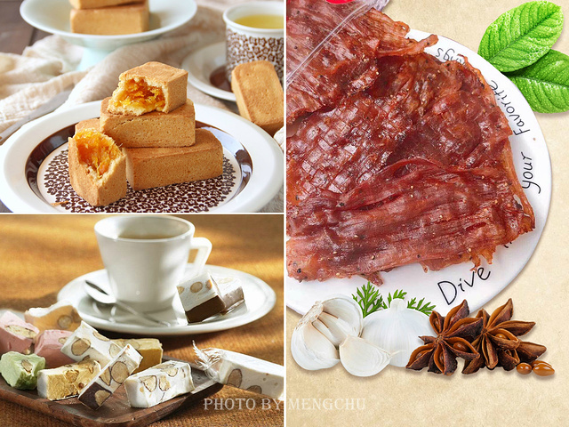 猪肉脯: 台湾 的肉脯不仅好吃而且性价比也很高,新 东阳 的肉脯和肉松非常热销,三十年老店江记华隆的肉铺和肉纸充满了古早味,快车肉干也是不错的选择。