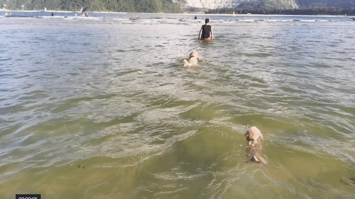 大海里有正在享受冲浪极致感受的浪人们。也有在后海土生土长的火锅和它的弟弟,每天下午都会在主人的带领下,来这里玩耍。