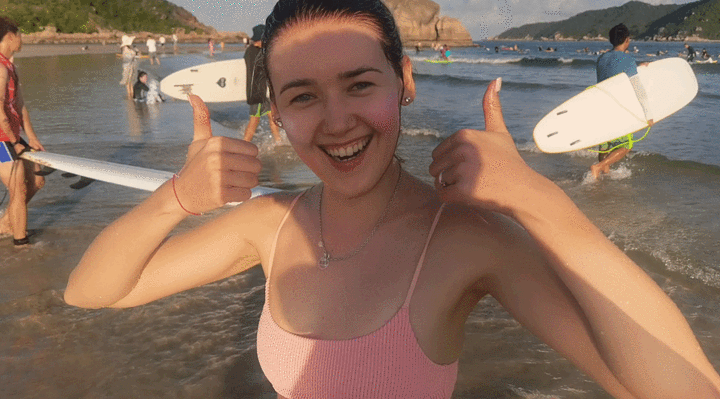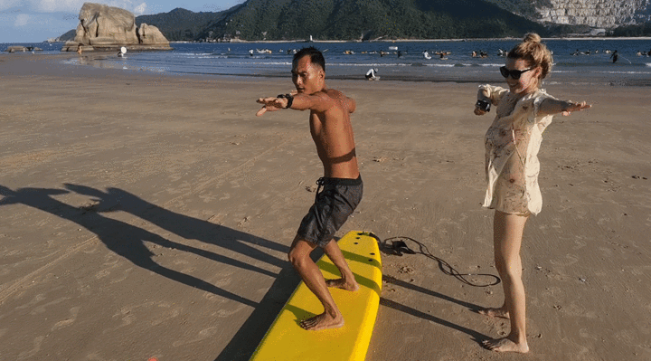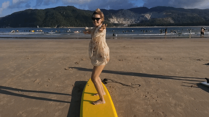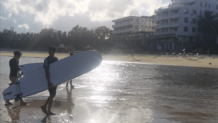 来自俄罗斯的Renata,来到后海就直呼爱上了这里,因为这里能让她尽情感受大海的魅力,这里有一群如她一般喜欢大海,对冲浪感兴趣的人们。没学过冲浪的她,怀揣着一丝未知的紧张和跃跃欲试的期待,经过教练旺仔的专业训练教学后,她已经按耐不住要下海一试的心。