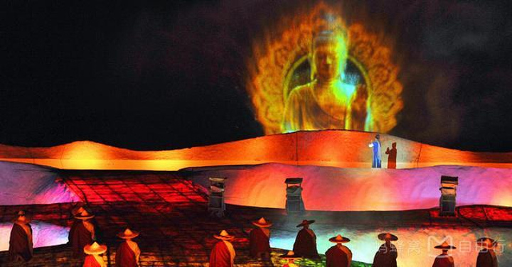 《敦煌盛典》分为六个篇章:《序·大漠魂》;第一幕《禅定·鸣沙山》;第二幕《远走·敦煌城》;第三幕《情牵·莫高窟》;第四幕《婵娟·月牙泉》;《尾声·梦敦煌》,以爱情故事为主线的演出,通过借助鸣沙山﹒月牙泉的大漠黄沙及敦煌山庄辉煌汉唐建筑群等实景,再现古丝绸之路重镇敦煌历史文化与人文风貌,这个就有点像《印象丽江》的感觉。