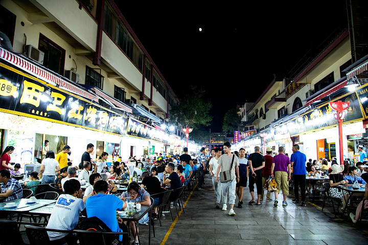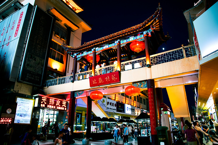 敦煌夜市,也称为沙州夜市 ,位于阳关东路,是敦煌最大的夜市,这里是丝路美食和和丝路工艺品的聚集地 ,因为具有鲜明的地方特色和浓郁的民俗风情,被誉为敦煌"夜景图"和"风情画"。每一个地方都有其夜市,基本都是购物与小吃一体,方便游客购物吃喝,敦煌的夜市也不例外,一条长长的街道贩卖着各类当地的特产、装饰品,样子也是很不错的,但是一样的存在价格偏贵,很多东西淘宝就可以买到,讲价还是有必要的。不过还是有一些让人喜欢的地方,首先就是进入也是的牌坊以及入口建筑,多了一些地域特色,尤其是敦煌夜市的牌坊更让人有点进入西部夜市的感觉,以及一些餐馆的装饰,让人眼前一亮。
