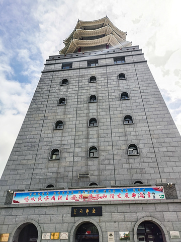 龙虎阁占地4800平方米,建筑面积8674.94平方米,总投资7000万元,结构为13层,建筑物总高度64.8米,建筑物为仿古建筑,周围是仿古青砖城墙。