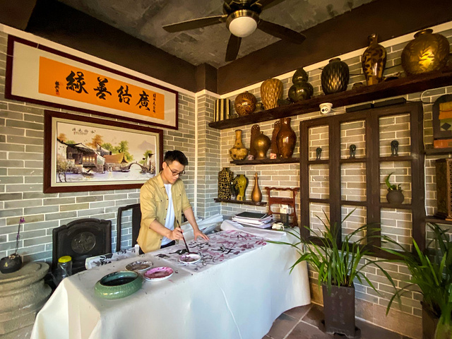 移步室内,古色古香的字画、陶器和仿古家具充斥其间,瞬间有种自己也是文人墨客的错觉~