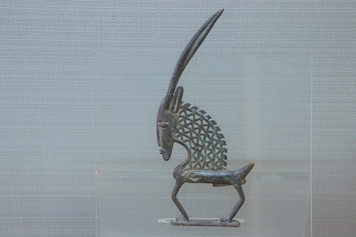 大家也都是各有所好,看了一些文物,我比较感兴趣的是新石器时代太阳形石权杖首,战国的骨雕女冠饰,辽代的刻鱼纹白釉绿彩盆,蒙古汗国时期的萨满神灵—人面雄鹿铜雕塑等。