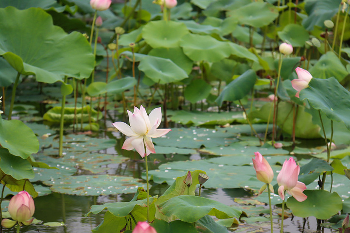 如皋旅游 平园池村因荷而起,平园池人爱荷、种荷,荷塘里茂盛的荷叶满目青翠、亭亭如盖,粉白的荷花姿态各异、清丽婉约,圆润可爱的莲蓬悄然掩映在莲叶间,交织成村民眼中一幅美好的致富画卷。