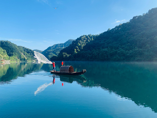 行程描述(第七站):8月14日(周五),为了早起看雾,早上6点起床(提前一天订了早上6:00-8:30进景区的票,由于对坐游船及溶洞不感兴趣,所以只买了线路一的票(小东江看雾+龙景峡谷),6:40出发前往景区走(看晨雾的最佳时间是早上6-8点);另外,14岁以下的儿童无须购买门票,只需在景区门口售票处补一张儿童乘车票;