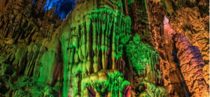五光十色来形容芦笛岩是不为过的。芦笛岩是喀斯特地貌的典型代表,岩内各种熔岩垂下,加上灯光的衬托,十分漂亮。