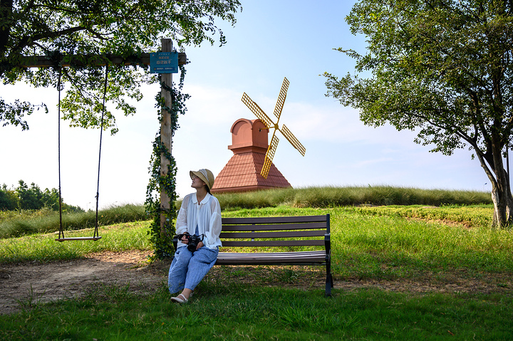 教堂前的草地中还有十二生肖石,不远处还有秋千、横椅及荷兰风车,所有的元素都在表明一个问题,这里是一片充满爱意的地方,一个让人流连忘返的爱情圣地,未来的这里绝对会成为上虞、杭州湾的网红打卡地。