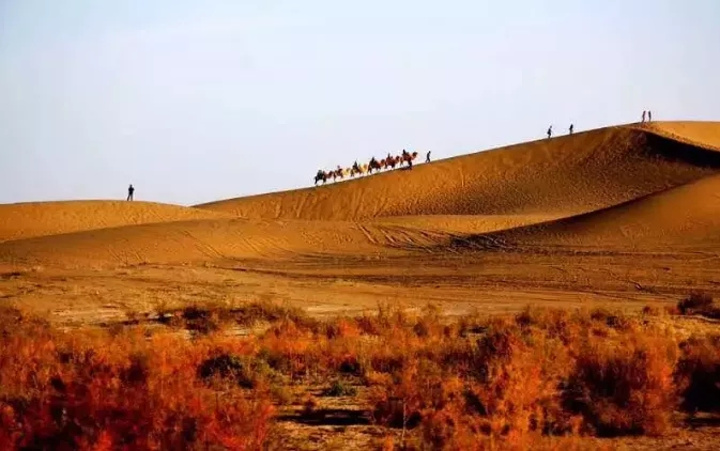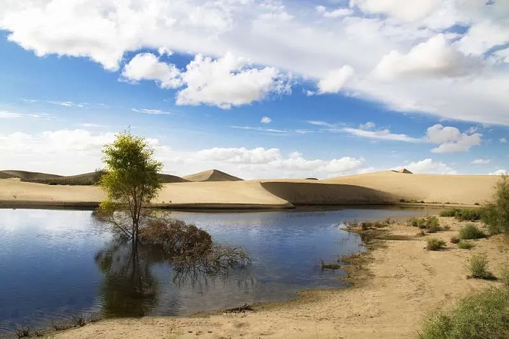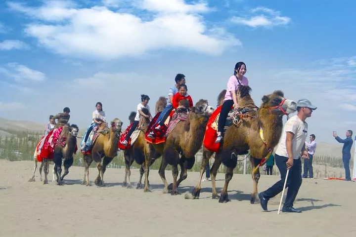 沙漠浩瀚无垠、查无人烟,沙丘、沙垅、沙山等景观雄伟多变,海市蜃楼幻影无穷,"大漠孤烟直, 长河落日圆”在这里体现得淋漓尽致。骑上“沙漠之舟”骆驼,沿途游览典型的新月形沙丘、沙垄、沙山和有着“生而一千年不死,死而一千年不倒,倒而一千年不朽”美誉的“大漠英雄树胡杨等沙生植物等景观。