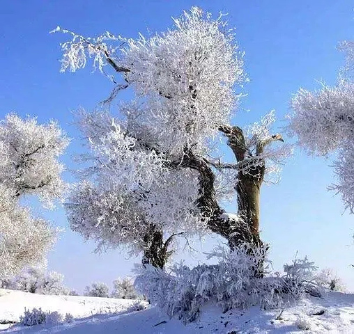 冬日里,大漠湖杨生态景区中的胡杨顶着一树的枝丫,换上了洁白的冬装,它孤独的伫立于沙漠之中,相相瞭望,任北风肆虐着它的容颜,仍痴痴的在这里守望,横逸竖斜的身姿,写意着无尽沧桑与坚强。