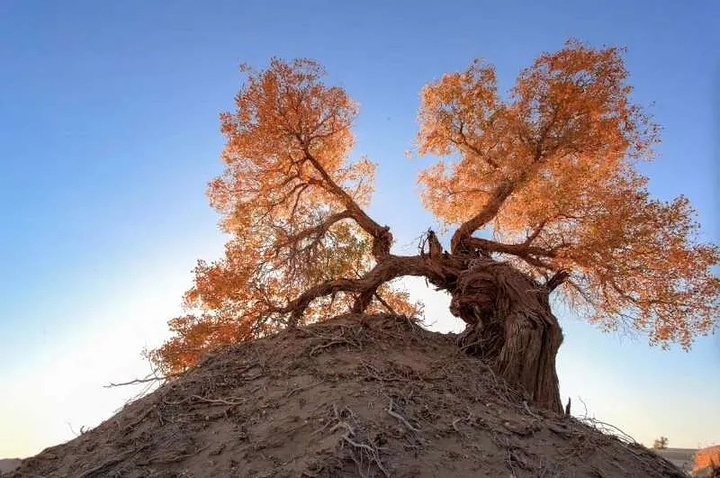 每年10-11 月,秋色渐浓,是胡杨林的最佳观赏期,吸引了八方游客前来邂逅大漠风光,看最美的金秋胡杨,以一种绝美的姿态在沙漠站立成一道绝世的风景,孤寂而神秘。