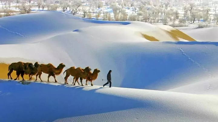 秋日的胡杨,满眼都是金黄,非常耀眼。而冬日的胡杨,尤其是雪后的胡杨林,美出了另一种姿色。