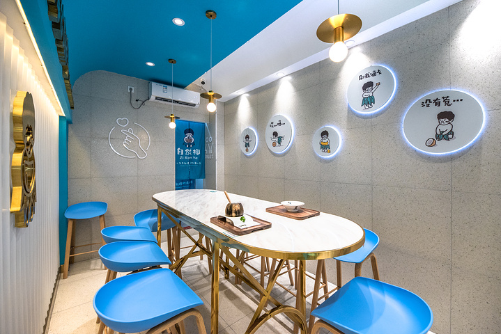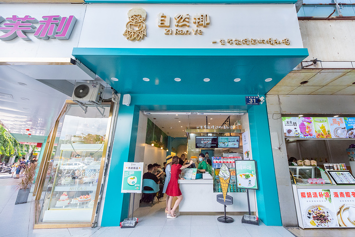 风格尤为时尚年轻化,蓝白色色调,金色原木色点缀。小小的门店,吃货太多啦。不仅有游客,还有很多当地情侣。去的时候,满座。不过你也可以外带。看着镇店名品椰奶/冰激凌清补凉的颜值,着实很高,颇有仪式感。对于难得去三亚的我们而言,怎能就这样随便应付呢?吧员说,在不远处的文明路还有他们的旗舰店,那儿的环境更好,空间更大,非常适合游客午后小憩。