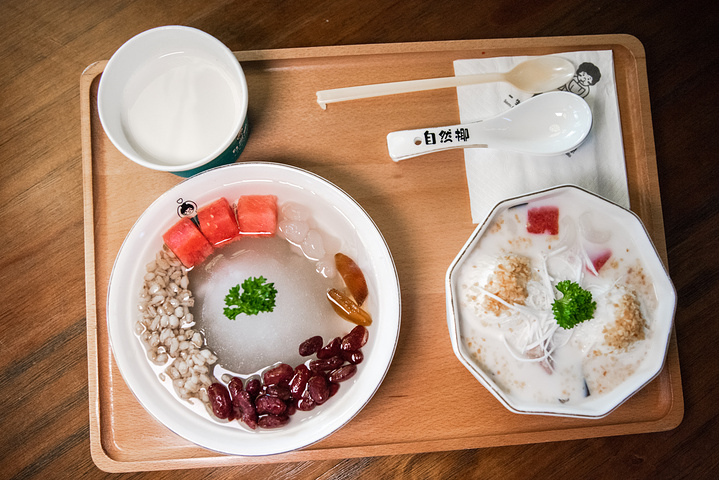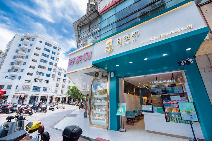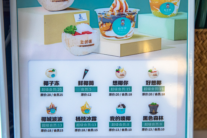 从阿浪餐厅大快朵颐出来,遛街压马路是最好的消食方式!不过三亚午后很晒,相比“当代年轻人的旅游,睡到大中午,客房吃外卖”这种慵懒,我们更愿意走街串巷,深入当地人的生活。于是,继续未完的“逛吃逛吃”事业。其实很多餐厅都有清补凉,一杯8~15元,地道是地道,感觉还不太正宗。无意间,看到了这家自然椰一市场店,看门头,很高大上的感觉。一生不能错过的清补凉——是品牌的slogan。看样子,是专注清补凉饮品的。