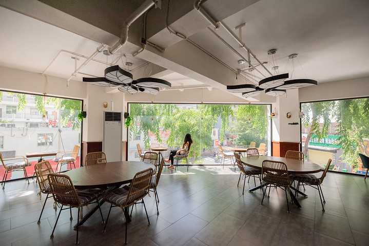 5.拍照点,门口椰林小院、室内靠窗边、一楼原木空间