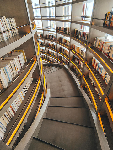 拍照的时候,觉得很一般,甚至觉得没有太大的特别之处,但是回来后看照片,发现莫名的觉得超好看,默默竟发现这里回味无穷,慢慢的被这里的建筑吸引住了,两侧的旋转楼梯,围绕这做有两层楼高的弧形书架,缺点就是有点单调,只有这座弧形书架,没有过多的装饰。