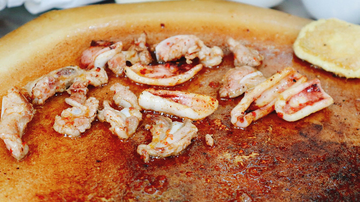 我觉得最好吃的是牛肉、五花肉和鱿鱼,煎烤的时候一定要注意火候,鸡翅要烤的时间久一点,牛肉不要烤的时间太长,容易老。五花肉一定要配着生菜吃,这样吃起来不腻,反而很香。