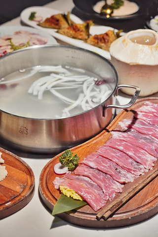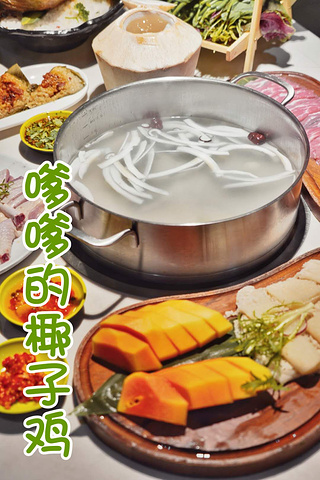 三个椰子一锅汤,椰子现开现下,水煮三分钟,即可开锅,满满的椰子香味扑面而来。竹荪木瓜椰子鸡|鲜嫩多汁的鸡肉,顺滑爽口,侵染着椰香味,香甜可口。嗲嗲的味道,健康的味道。嗲嗲纯手工鱼豆花|纯手工打碎鱼肉后再做成的鱼豆花,鱼肉口感稚嫩香甜;千年古盐田盐焗文昌鸡|,一整只完整的文昌鸡包裹其中,盐焗蒸烤而成,店员会帮你手撕鸡肉,方便食用。