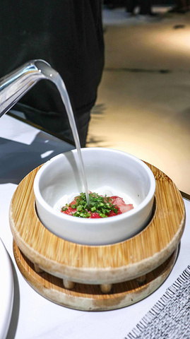 很清单温补的一道汤菜,会在端上桌的时候导入牛肉汤,倒汤的过程好像海上冲浪一样,海水翻涌,里面搭配粉丝,还有牛肉片。