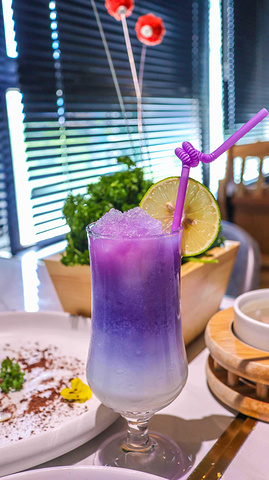 很有颜值的一道甜品,尽显了蝶恋花的蓝色魅力,里面还加入了优酸乳,口感细腻醇厚,淡淡的奶香味道。