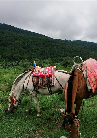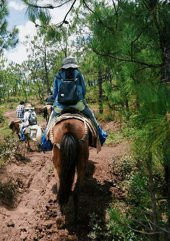 在进山前的一个分叉口,我们一行人分开了,由马自己选择要走的路,有人说这便是“马选”,马夫说,我们会在望海坡汇合的。我骑的这只马儿有些调皮,时不时停下来低头吃草,把我吓坏了~
