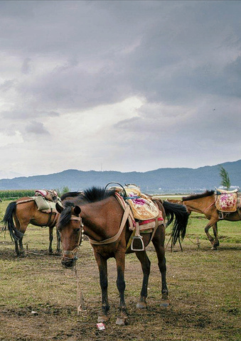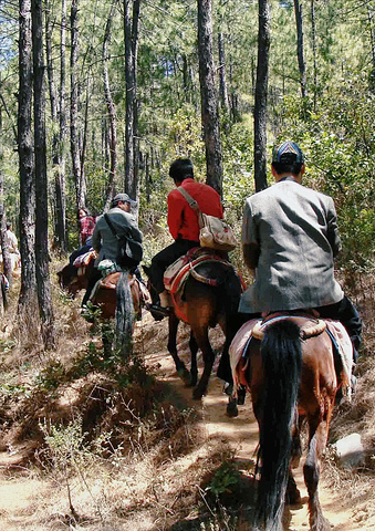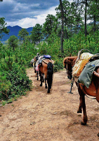 第一次骑马的我,既好奇又兴奋,还有一丝害怕。穿过古老的村庄,下一个长长的大坡,就准备上山了,马夫告诉我们下坡时脚要向前伸,身体要向后仰,还挺有意思的。