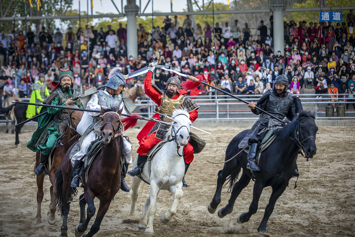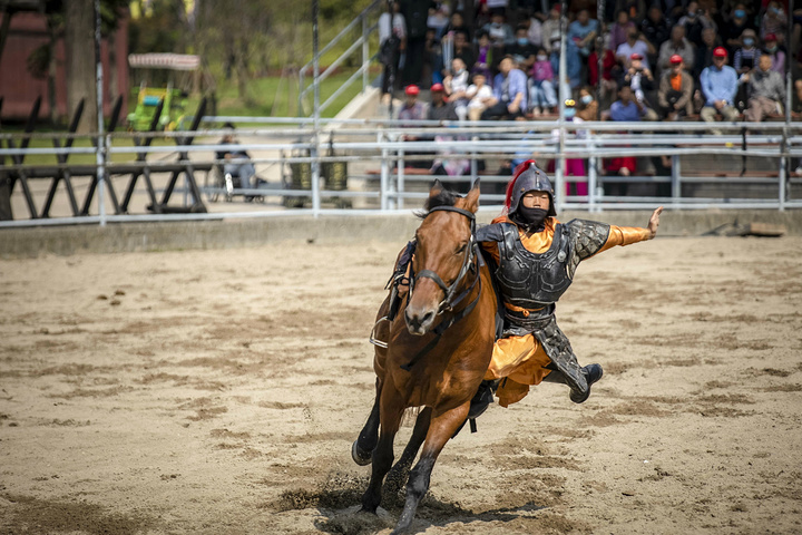 虽然名字叫做“三英战吕布但”演出一开始,每一位“武将”都会轮番出场,来展示自己的马上绝技,若是没有扎实的基本功,一定无法完成这些高难度的动作。