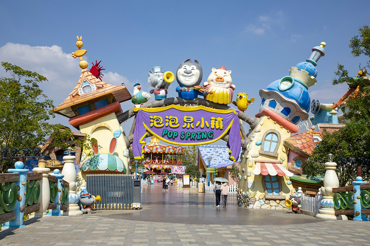 走出了古香古色的 江南 水乡,正式开始主题乐园的旅程,泡泡泉小镇从名字上就能知道这是一个很可爱的地方,小镇的风格特别可爱,每一个细节都能萌化你,十分的可爱到,这里有开满了七彩花的树爷爷,还有备受大人和小孩都喜欢的旋转木马,充满欢声笑语的碰碰小虎,每一个游玩项目都能够让人童心大发。