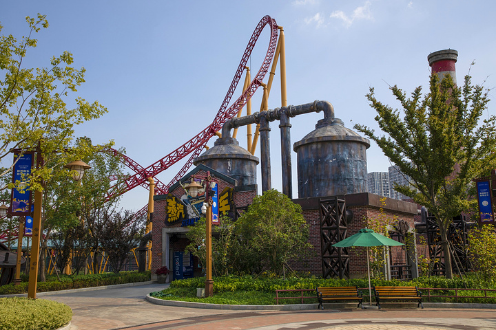 蒸汽时代主题的这个区域是满满的复古工业风,走到这里的必打卡明星项目自然是蒸汽飞车,一开始觉得,这个项目应该是个慢慢游览的观光项目,以为蒸汽车绝对跑不快,然而看到巨大的轨道的时候,好吧....下一个项目,这个项目不适合我。