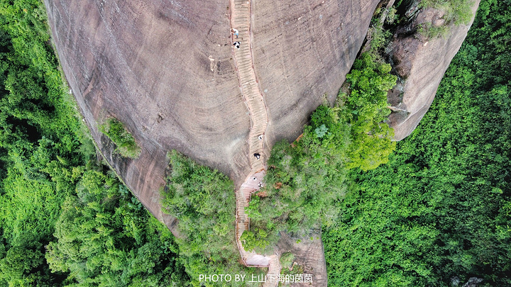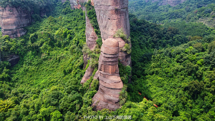 阳元石景区绝对是中国丹霞山世界地质公园里最特别的存在了,景区里的核心景观就是那高28米、直径7米的天然石柱——“阳元石”了!虽然阳元石有专属的观景台,但在我看来最好的“机位”在空中。从无人机的视角可以更直观的呈现这个惟妙惟肖的大石头柱子!大自然用了30万年将石柱和阳元山进行剥离,不得不感叹上天的鬼斧神工!