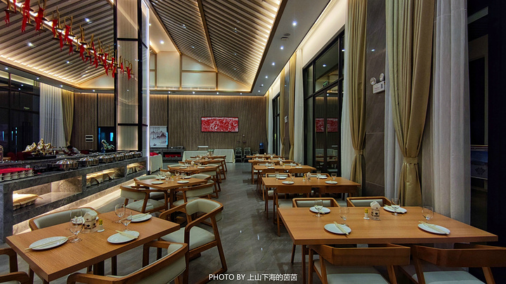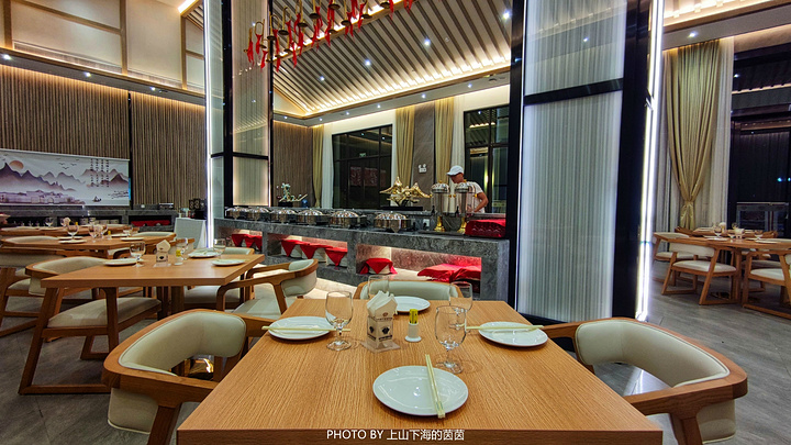 虽说“吃喝玩乐”这四个内容都很重要,但“吃”绝对是旅途中最让人期待的一个环节。位于丰源温泉酒店一楼的“兰亭餐厅”光是听名字就已经很“中国风”,内饰极具现代中式特色的装修风格,可同时容纳120人用餐。