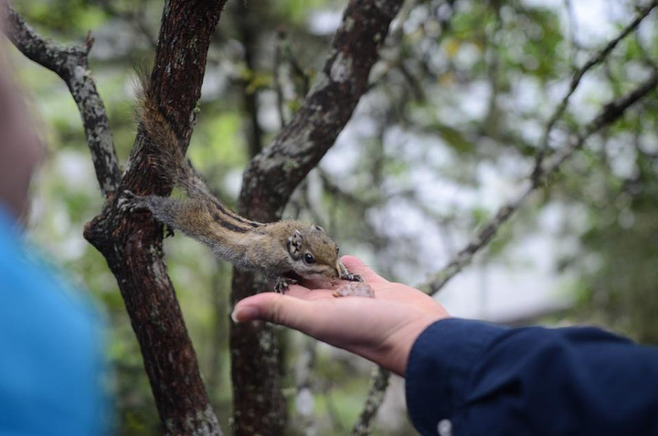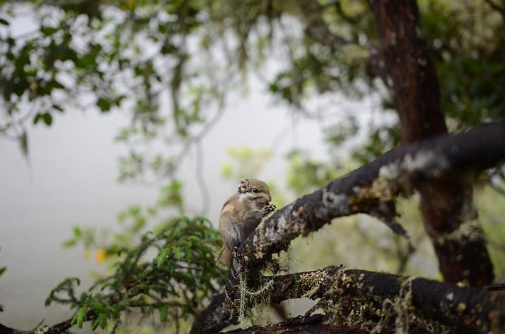 我们包了一两8座的车,150包括接送,司机师傅还压了自己的证件帮我们租羽绒服,50每人的租金,氧气我们都没有买,事后发现在大门口没有反应的话,后面走路别太快其实都没事。普达措的门票包括了130左右的门票和130左右的车票,这个车票真是生财有道。统共才50公里不到的路程收这么多钱也真是……下雨天的风景没有晴天的泸沽湖那么好,感觉比较荒凉,没有网上说的那么好的感觉,水也有点混。不过这里的松鼠好漂亮,印象里西湖六公园的松鼠都是灰色的跟大老鼠一样一点也不好看,这里的松鼠蛮漂亮,也不怕人,有人用食物诱惑着我也跟着拍了几张。栈道两边的草地里全是各种的粪便,额说实话我不太喜欢这么狂野的原生态。大概四五个小时就游览完了。晚上我定了六点半到大理的车票,本以为是夜班车,百度上也说这车开一晚上的,结果现在路好了半夜就到了,本想省个住宿费的也失败了,最后80块在古城西门附近随便住下了。