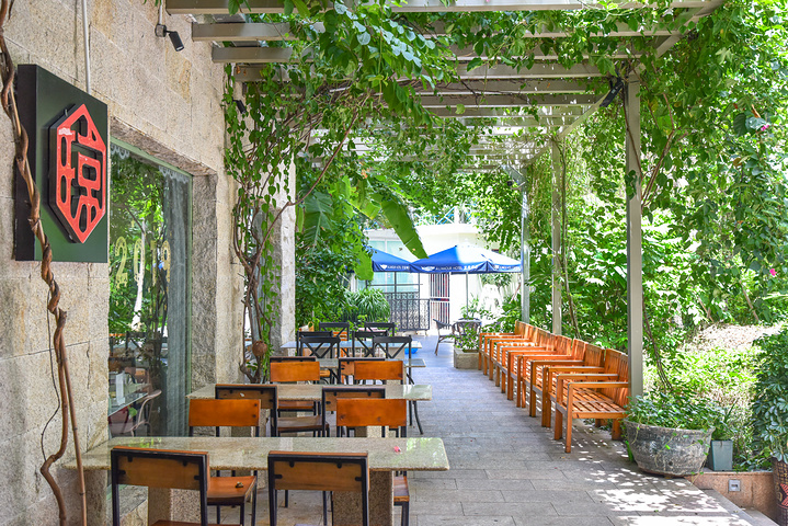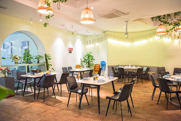 出发三亚前,做过攻略。距离三亚康年附近的海南菜最好吃的琼乡阁。安排行程时,正好看到椰梦长廊、拍摄基地就在附近。距离打卡点,仅2km处,三亚湾海南菜排名第一的宝藏餐厅——琼乡阁,餐厅隐匿在热带园林中,门前椰树参天,三角梅绽放,门前树荫小院,很惬意。内部装修风格以简约的白色为主,绿植点缀,原石色地砖、北欧风餐桌,看起来舒适惬意。餐厅景观位很多,一道拱门,将前部、中后部餐区分开。