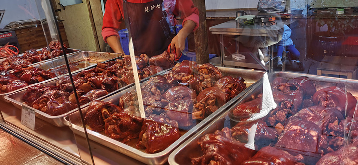 被导游安利的蹄膀(猪肘子),说是当年朱元璋下榻江南富豪沈万三家宅,沈万三家宴中上了一道猪肘子,朱元璋故意询问这个菜怎么个吃法。因为朱元璋讳猪字,更是不能用刀切开蹄膀,沈万三一时机灵,从蹄膀中间取出一根骨头代刀切肉,炖至酥烂的蹄膀很容易就被切开了。朱元璋品尝过后又继续刁难此菜为何名,吓的沈万三立刻跪下来恳请朱元璋赐名。朱元璋便赐名万三蹄,从此以后万三蹄作为江南名菜,成为了宴请宾客的诚意菜品。