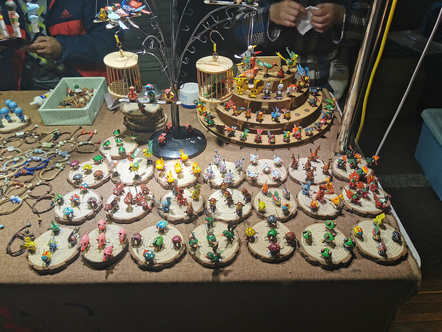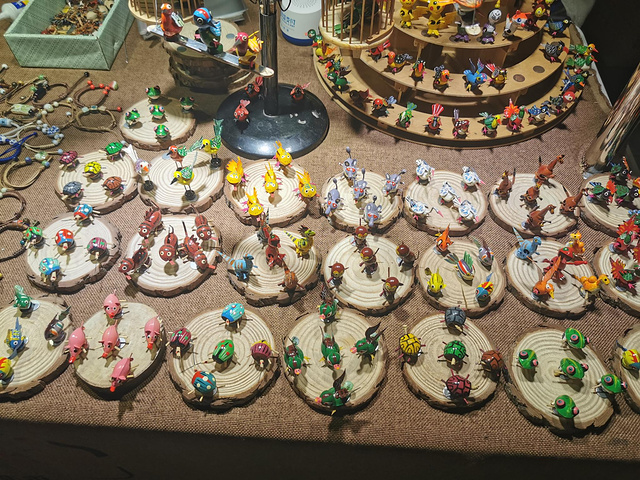 银杏壳做的手工艺品,风吹过时,杠杆原理,露在外面的四肢会一起动起来。买了五只颜色形状不同的小鸟,贴在有磁石的木底座上。