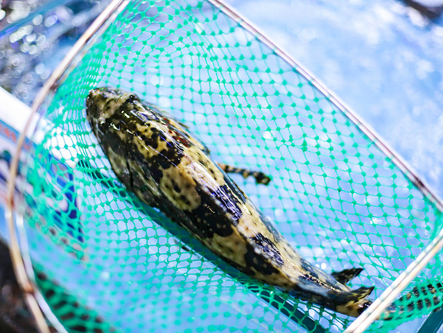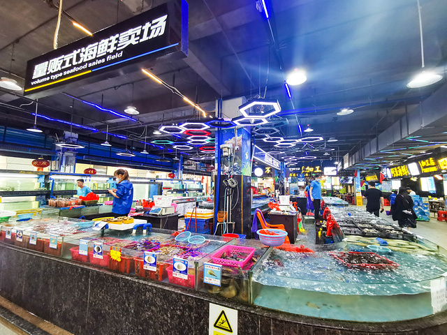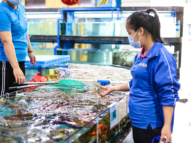 亚龙湾的阿浪在奥特莱斯的海鲜广场里面,在亚龙湾属于位置很好的地方,不但能够吃到海鲜,还可以逛奥特莱斯,各种折扣还是蛮给力的,适合扫货,阿浪店里环境蛮干净的,而且是在室内,和昨天海棠湾的大排档比起来,还真算得上是另一番不一样的体验。这边的海鲜都是量贩式,阿浪在这边是专做加工,海鲜从外面购买回来,海鲜池就在门口。是一个海鲜广场形式,但是地面没有湿漉漉,这点挺好的。来到店门口,服务员同样很热情,热情的迎上来帮我们选择鲜活的海味,并过秤。