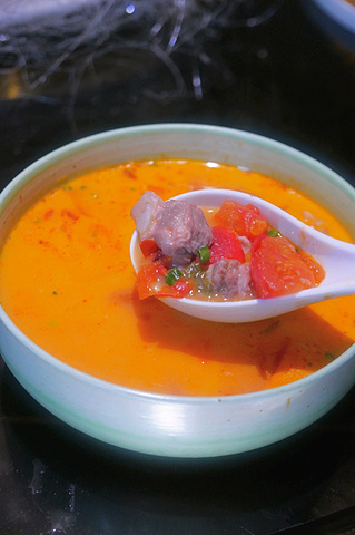 番茄土豆排骨汤:火候掌握精准,排骨煮的很化,喝起来鲜香浓郁。