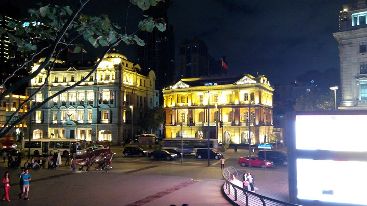 南京路步行街往东走到头就是外滩了。我们到达的时候天色已经擦黑了,华灯初上黄浦江畔泛着微风天上的云还依稀可见,赞!!!惬意呀!!!外滩夜景,这个时候来刚刚好!!!来自游记初遇江南(整理2013年老照片随笔)