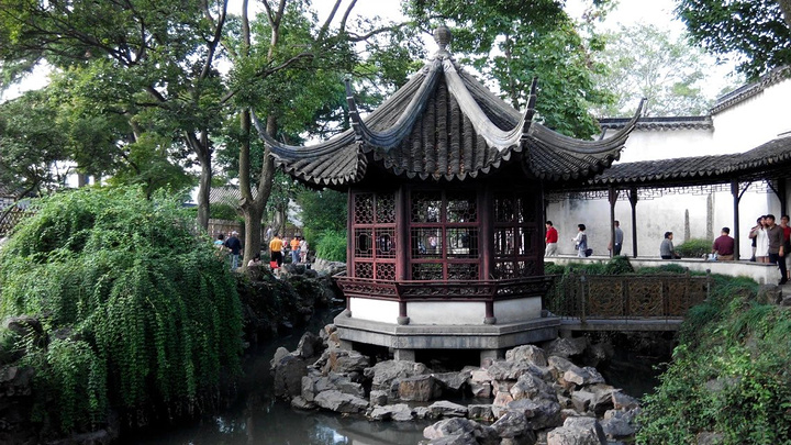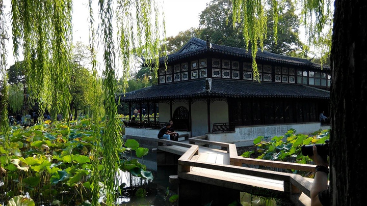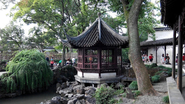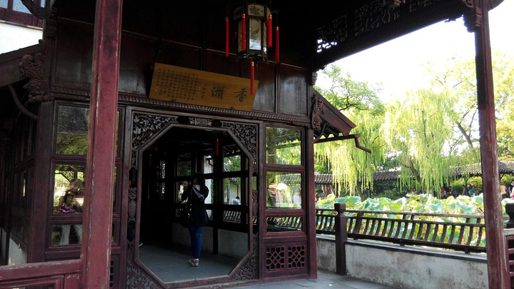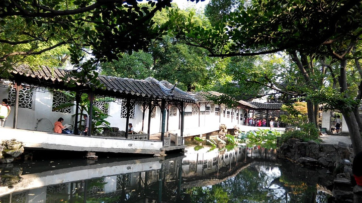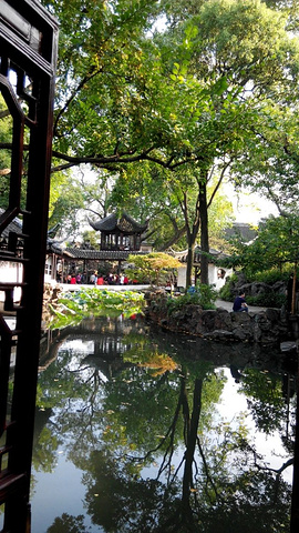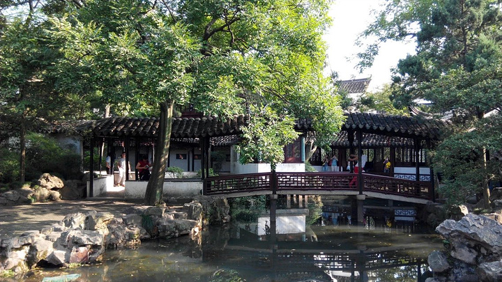 拙政园始建于明正德初年,距今已有500多年历史,是江南古典园林的代表作品 拙政园位于古城苏州东北隅路,是苏州现存最大的古典园林,占地78亩。全园以水为中心,山水萦绕,厅榭精美,花木繁茂,充满诗情画意,具有浓郁的江南水乡特色。花园分为东、中、西三部分,东花园开阔疏朗,中花园是全园精华所在,西花园建住精美,各具特色。园南为住宅区,体现典型江南民居多进的格局。园南还建有苏州园林博物馆,是国内唯一的园林专题博物馆。好大一个园林呀!!!门票也好贵呀70大元一张!不过景色确实很美由于设备与技术问题未能完全在照片中展现出来!(红米手机手机中的战斗机)在听引导讲解时了解到拙政园居然是一家的后花园,这人叫王献臣明弘治六年中进士,授职行人,又升迁为御史就是现在的检察院工作。检察院专门整治贪官污吏后来还说被东厂诬陷两次入狱死里逃生后罢官回家了。检察院还丢了官还这么有钱!!!羡慕嫉妒恨呀!不小心说出来了 拙政园门前的甬路上都是些小商铺店面卖一些手工艺品路上还看到一座太平天国忠王府不过并没有开放。几年后在去苏州才知道忠王府是苏州博物馆的一部分。