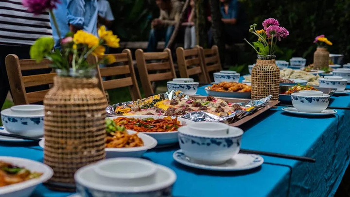 当然,小小的园子没办法让所有人都于此感受最传统最原始的田园生活,却也满足了我们对“桃花源”的好奇和期待。闲时可以来此架上柴火,亭后打一桶山泉水,煮一壶雷响茶,与三五好友静心而坐,或谈天说地,或聊家常琐碎,吃着精致的下午茶,心安理得的去“浪费”时间。