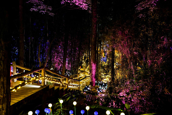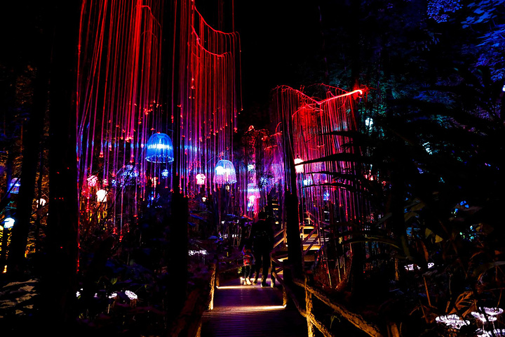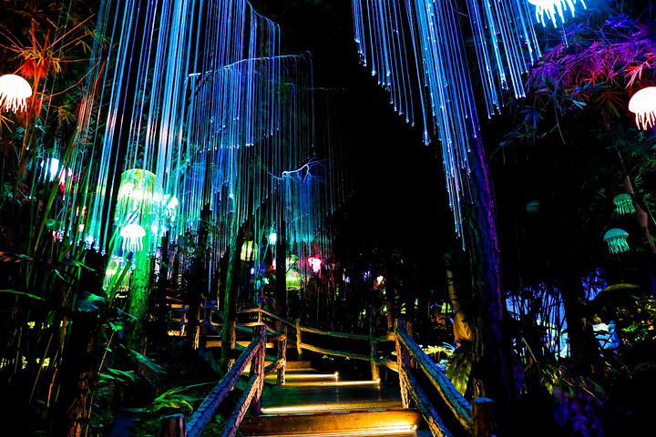 游玩建议:吃过晚饭,就步行过去,先在入口处进行简单的拍照,然后8:00去森境光影舞台观看表演。正常的表演时间为40分钟左右。如果碰上重大的节假日,表演的种类和时长可能会更加丰富一些。如果你看完演出再去挨个打开,时间就有点赶了。我当时选择的是看了一部分表演,然后就去打卡了。如果对于表演的兴趣不是很大,建议可以忽略这个项目,直接去游览。这样你可以在每隔打卡地点慢慢的拍照,直到你满意为止。