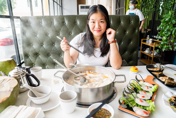 逛着逛着,看到了路边有家萌哒哒椰子鸡,这可是早就在我的打卡清单上的一家店呢。第一顿饭,我们的选择就它了,萌哒哒椰子鸡,一家听起来就很萌的椰子鸡店。