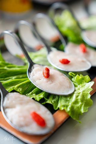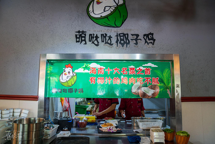 萌哒哒椰子鸡的整个就餐环境很有森林风,就仿佛置身于椰树林下,脚下的文昌鸡到处奔跑,仿佛还原了椰子鸡生活的画面。椰子鸡是海南十大名菜之首,总听说有椰汁的鸡肉吃不腻,我们也来试试?