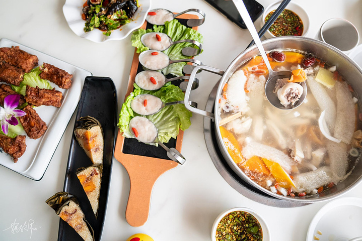 入座以后服务员很热情,我们除了点一锅椰子鸡外,还点了藤桥炸排骨、麻辣土鸡脚以及海南定安猪肉粽,虽然是网红店,但幸好都没有踩雷,吃起来很满意。