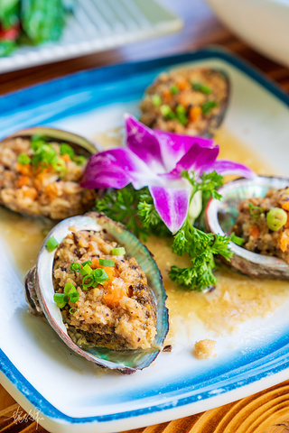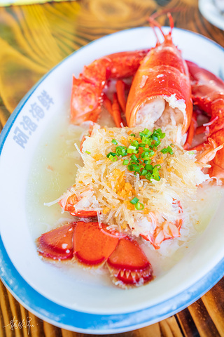 阿浪海鲜家的椰子饭,椰香十足,软糯香甜,忍不住多吃了两口。大龙虾大概是招牌菜,两个人一只蒜蓉开边大龙虾吃得太爽了,粉丝简直就是整道菜的精华。活鲍鱼搭配一丝丝蒜蓉一些些粉丝,蒸的时间正好,不能过老,鲜甜美味。