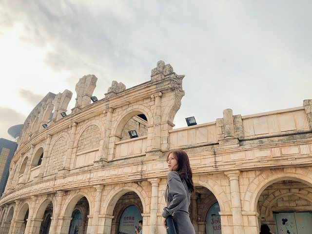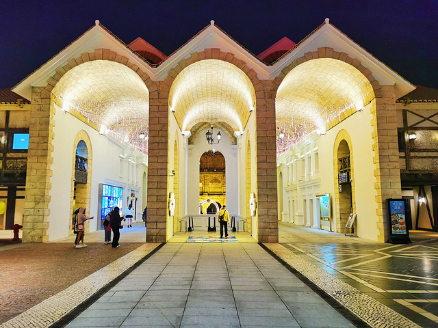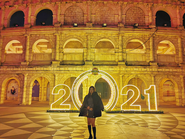 可能是疫情的原因,人流量不大,励骏广场的美食街晚上才会迎来一天的客流高峰期,但是一路上挂满了彩灯和圣诞装饰,缤纷多彩,很浪漫。欣欣最喜欢的就是有着“小欧洲”之称的古罗马表演场,风格来源于古罗马竞技场。